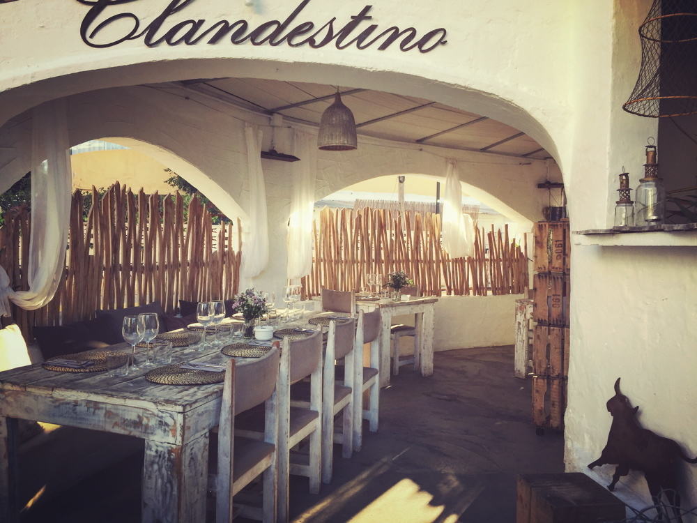 Para disfrutar de la gastronomía de la isla en un entorno con mucho encanto por su decoración y ubicación no os podéis perder el restaurante Clandestino, en playa D'en Bossa. Tiene una terraza preciosa, con muebles de madera y tonalidades claras, nada pretenciosa pero con un estilo muy particular que hace de este restaurante un lugar ideal para pasar las noches de verano. Cuenta con un menú mediterráneo, con influencia italiana y toques de diferentes partes del mundo. Producto de calidad, fresco y de temporada. Su carta cambia cada mes y tienen un pequeña lista de sugerencias de los más apetitosas. Hace falta reservar mesa ya que es un sitio pequeñito, íntimo y acogedor. Entre sus "must" no te puedes perder su pasta artesanal como los ñoquis con frutos del mar con una base de bogavante o alguno de sus cócteles.